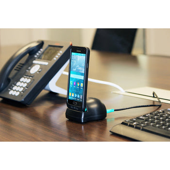 - Desktop dock supporting phones and tablets wrapped in an IntelliSkin®