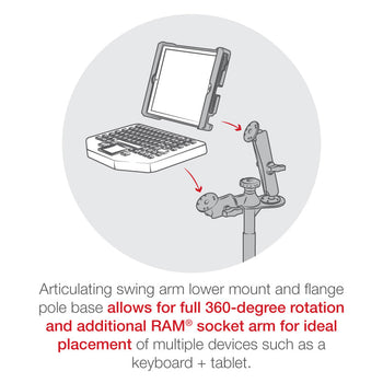 • Articulating swing arm allows for full 360-degree rotation for ideal GDS® Keyboard™ placement; compatible with RAM® lower pole bases