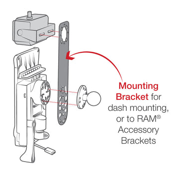 Attach a speaker or microphone to your RAM® Tab-Tite™ or RAM® Tab-Lock™ cradle with the RAM® Speaker/Microphone Bracket. Simply install the bracket between the cradle and the ball base – hardware is included for attaching the bracket to any cradle. Compatible with speakers, microphones and accessories that use the common AMPS hole pattern, the bracket features four spaced AMPS hole pattern sets that allow for various mounting heights. Also included is a vertical and horizontal set of holes for attaching a diamond base. Measuring 8.99" in length, this bracket supports both portrait and landscape placement.