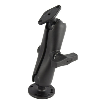 The RAM-138U consists of a 2.5" diameter round base that contains the universal AMPs hole pattern, double socket arm and diamond base adapter. The mount is designed with a 1.5" diameter patented rubber ball and socket system that has adjustment points at both ends of the double socket arm; this allowing for almost infinite adjustment and perfect viewing angles. The hole pattern found on the diamond base adapter will connect to most RAM cradles. The included RAM’s patented design dampens shock and vibration, helping to extend the life of your device.