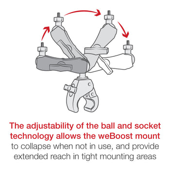 - The adjustability of the ball and socket technology allows the weBoost mount to collapse when not in use, and provide extended reach in tight mounting areas