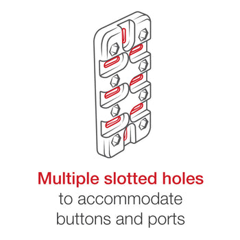 The RAM® Finger-Grip™ is a universal holder that can accommodate a wide range of devices including GPS, handheld radios, phones, bluetooth speakers, and much more. Included with the holder are three sets of four flexible rubber-coated fingers to grip your device. The main backing plate consists of multiple slotted holes where any set of finger grips can be positioned to hold your device firmly. When positioned correctly, your device can easily wedge in and out of the holder; suited for any rough environment. Also included are two sets of optional top and bottom supports to add even more stability to your device if needed. This sku also includes a medium length B size arm as well as a yoke clamp base for yokes for yokes between .625" and 1.25" in diameter.
