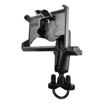This motorcycle mount makes attaching to handlebars, tubing, or railing a breeze. Simple to install and easy to use, the possibilities become endless. The zinc coated metal u-bolt and nuts included are designed it fit motorcycle handlebars, or circular rail that are 0.50" to 1.25" in diameter. Rubber ball and socket technology allows for almost infinite adjustment and perfect viewing angles. High quality materials insure your GPS is safe, secure, and within easy reach. RAM’s patented design also dampens shock and vibration helping to extend the life of your mobile device.
