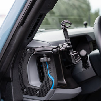 The RAM® Grab Handle Bolt Adapter Base is the ideal base for installing RAM® Mounts on any vehicle's grab handle that features an M6 threaded bolt. With a hollow center, you are able to feed the 6mm bolt or smaller to screw into your vehicle's grab handle for a stable mounting base with no drilling required. Keep your windshield clean, and your phone mount out of the way with this grab handle mount for phones, GPS devices, GoPro® cameras, and more! Confirmed fitment for this product include the Toyota Tundra, Ford F-150, and all Ford Bronco models including the base model, Big Bend, Black Diamond, Outer Banks, Badlands, Wildtrak, Everglades, Heritage, and Raptor—however any vehicle which employs a 6mm bolt or smaller on its structure is compatible with this product. A smaller bolt can be used, though the load capacity decreases with the bolt size.