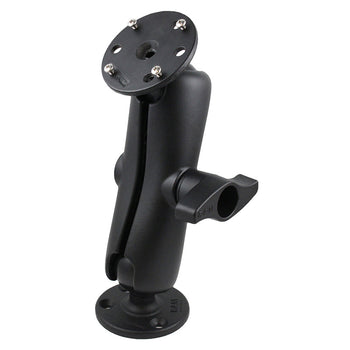 The RAM-D-101-RM1U consists of a 3.68" diameter round base with the universal AMPS hole pattern, STANDARD length double socket arm and 3.68" round base. The RAM-D-101-RM1U includes hardware that will attach Raymarine Chartplotters to the mount. Designed into the mount is a 2.25" diameter patented rubber ball and socket system with adjustment points at both socket ends of the arm.