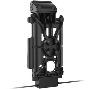 • Spring-loaded vehicle dock featuring GDS® Technology™ uses an integrated pogo pin connector to provide charging and connection to one additional USB peripheral