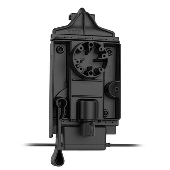 The dual USB Type-C locking vehicle dock for IntelliSkin® Next Generation features GDS® Technology™ for Apple iPad mini (A17 Pro) & mini 6 and other small tablets to enable high speed charging capabilities on the go. This spring-loaded, quick release dock features a keyed lock that offers a secure fit with easy access to your mounted tablet. A bottom dock cup includes 8 pogo pins and a USB Type-C pigtail. Without the need to remove your IntelliSkin® Next Gen sleeve from the device, efficiently mount the tablet in the vehicle dock to keep your tablet charged and locked in place. This dock is designed to meet the demands of field workers in a variety of applications, including transportation, field sales, logistics, manufacturing, and much more. Always Protected. Always Connected.®