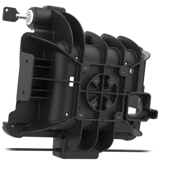 Featuring GDS® Technology™ for data and charging capabilities and a key lock for theft deterrence, the GDS® Vehicle Dock for Zebra ET40 & ET45 10" enterprise tablets with IntelliSkin® Next Generation protective sleeve allows you to connect up to two desired peripherals while keeping the device charged through the pogo pin contacts when the device is docked. Power is provided by connecting to the dock's USB Type-C connector, while peripheral support is provided by the built-in dual USB Type-A cable. The dock also allows the tablet's scanning function to work on the side, as well as tablet add-ons such as the Zebra Expansion Back and PowerPack Battery. This vehicle dock is compatible with C and D size RAM® 4-hole AMPS and 75mm x 75mm VESA pattern bases for attaching a double socket arm in order to complete your mounting solution. Take the solution a step further by taking advantage of the built-in 2-hole mounting plate compatible with RAM® 2-hole diamond base for additional device mounting such as a phone or other handheld device. Always Protected. Always Connected.®