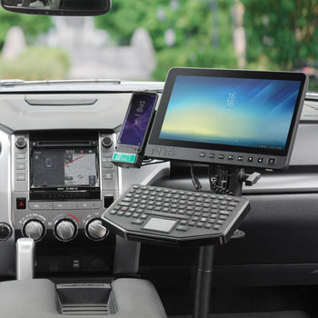 The GDS® View™ 13.3” touchscreen monitor lets you take the PC experience on the road. Featuring VESA hole patterns compatible with the RAM-2461U and RAM-D-2461U mounting plates, create a mobile workstation that takes advantage of the GDS® Ecosystem™ for data sync and charging capabilities. The GDS® View™ monitor has undergone MIL-STD-810H 514.5 vibration testing, ensuring performance in the most demanding environments. This two-point capacitive touchscreen monitor allows you to pinch, zoom, and select – and includes an anti-glare and anti-fingerprint treatment. Control buttons on the front of the monitor are easy to access, while a red monochrome night mode helps to reduce eyestrain. In addition, two integrated 2W speakers allow for audio. Includes HDMI, VGA, three USB-A Ports, one USB-B Port, and USB Type-B to USB Type-A cables. Always Protected. Always Connected.®