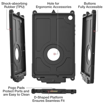 The IntelliSkin® Next Generation protective sleeve with LED for the Samsung Galaxy Tab A9+ includes all the great features of the original IntelliSkin® while adding several enhancements. An insert molded redesign of the skin combines a hard plastic shell with soft, shock-absorbing rubber. Ruggedized contacts for repetitive docking in field applications remain on the exterior, but are now flat to collect less dirt and allow for easier cleaning. And an integrated USB Type-C connector at the bottom of the skin allows for device charging even when you don’t have a GDS® Dock™ available. Like the original IntelliSkin®, these sleeves still provide military-grade drop protection and prevent damage to your device’s charging port from constant docking with an integrated GDS® connector molded directly into the skin. The IntelliSkin® Next Generation for the Samsung Galaxy Tab A9+ is compatible with a variety of GDS® Docks™ and accessories, as well as new docking cups for upgrading existing GDS® vehicle docks. Always Protected. Always Connected.®