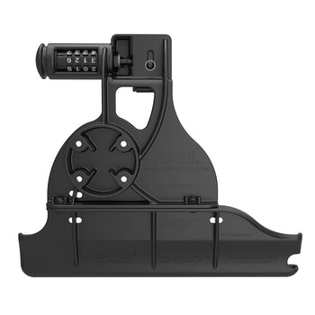 The RAM® EZ-Roll’r™ key-locking cradle for the iPad (7th generation), Pro 10.5 and Air 3 secures your device in a form-fit holder while keeping the entire screen visible. Simply slide your iPad into the cradle and roll the top clip over the device to secure into place. The side buttons, camera, and charging port are conveniently exposed and accessible. This RAM® EZ-Roll’r™ cradle also features an attachment point on the back to attach a RAM® round ball base. For security and theft deterrence, the cradle features a patented dial combination lock.