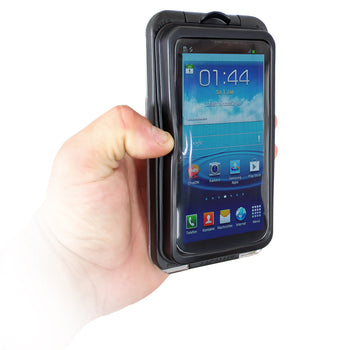 The RAM AQUA BOX® product line has been keeping mobile phones and devices safe for years. Now, with the introduction of the AQUA BOX® Pro, you have access to side buttons and full use of the touchscreen. Weather resistant and splash proof, this unique patented design allows access to all side buttons on the phone while in the case. Are you one of those people that can be a little rough on things? Our PVC Vinyl screen is replaceable so if you start to lose that crystal clear appearance, we’ve got you covered…literally. Allowing easy operation of the touch screen while in the case, the compact and sleek design means traveling with your AQUA BOX® Pro is never a hassle. Think an enclosure will slow you down? Think again. Send text messages, listen to music, take photos or capture video, make calls all while protecting your phone.
