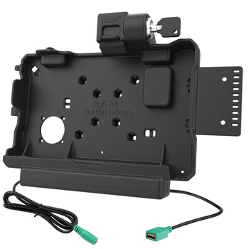 The RAM® Locking Power + Data Dock for Getac ZX80 (RAM-HOL-GE5PDKLU) allows you to secure the device and keep it charged through the pogo pin contacts while docked—power is provided by connecting to the dock's 5.5mm DC power jack. Add a peripheral with the built-in USB Type-A cord and connect a keyboard, barcode scanner, printer, and more. Upgrade with any combination of compatible accessories including the RAM® Temp-Right™, Vent-Temp™, RAM® NFC Extender, and D size VESA base. Additional compatibility for Getac accessories include the Standard & High capacity batteries as well as the 2-Point Shoulder Strap. Take the solution a step further by taking advantage of the included 2-hole side bracket, compatible with RAM® 2-hole diamond bases for additional device mounting such as a phone or other handheld device.