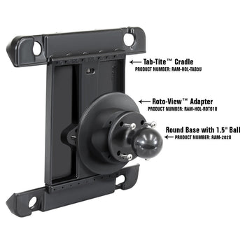 The easy-to-use interface of your tablet makes for a user friendly experience, while on the go. Now you can optimize this mobile experience with the Roto-View™; an adapter plate that allows for adjustment to accommodate many tablet viewing configurations. The Roto-View™ utilizes multiple detents to adjust the tablet to the most popular viewing angles, including landscape and portrait mode. No need to loosen the knob of your double socket arm to reposition your tablet. Instead, simply rotate the cradle to achieve the same result. Compatible with a wide range of tablet cradles and mounts, RAM now offers yet another "easy-to-use" product to help enhance your mobile experience. Hardware included with Roto-View™ Adapter to attach to all 1"/1.5" bases/mounts that contain the AMPS hole pattern or diamond hole pattern.