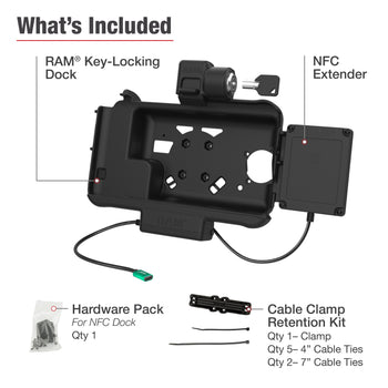 - Includes NFC repeater extending to 30cm of reach and attaches to the back of select RAM® and GDS® tablet docks