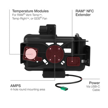 - Compatible with most RAM® dock accessories including Temperature Control Accessories, RAM® NFC Extender, GDS® Roto-Mag™, and side accessory attachments