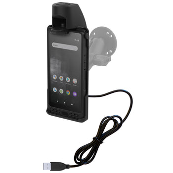 The RAM® EZ-Roll'r™ Powered Cradle for Sonim XP10 secures your device in a form-fit holder while keeping the entire screen and buttons visible and accessible. This powered cradle features two integrated pogo pins that provide charging capabilities to the device through a male USB Type-A connector. Single-handed operation makes it easy to dock and remove the Sonim XP10—simply lift the top lever and pull out the device or place the bottom portion of the device in first and push in to lock in place. Compatible with RAM® two-hole AMPS pattern bases and the RAM® Microphone & PTT Speaker Bracket, this RAM® form-fit cradle easily connects to B and C size ball mounts for use in a wide variety of applications.