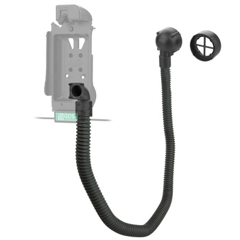 This RAM® Vent-Temp™ temperature module accessory (RAM-VENT1-RND-50U) installs to the back of compatible RAM® and GDS® docks and attaches to circular A/C vents 3.67" in diameter, using included zip ties. This version of the RAM® Vent-Temp™ directs air produced by your vehicle's A/C system to either cool, or heat up the docked tablet from the back. This is ideal for environments where the tablet needs to be cooled off or heated up to maintain operating temperatures during critical work functions. When installed correctly and vent cover is attached to a circular air vent, the hose adapter features integrated magnets for easy break-away when the RAM® Vent-Temp™ is not needed, or gets caught on something that could tug on the hose. The 50" included flexible hose can be cut to the desired length of reach from vent to tablet dock.