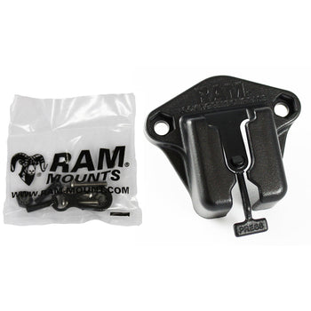 The RAP-B-304U is a universal receiver base that can support most T-Bolts, T-Nuts, carriage bolts, belt clips and other button adapters. The 2-Hole AMPS hole pattern can hard mount to any flat surface as well as connect to any RAM double ball and socket mount. The built-in tab will keep your device secured while in the receiver and offers a quick disconnect function.