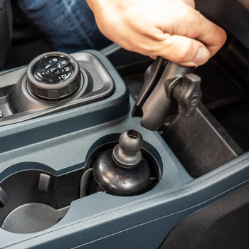 The RAM Stubby™ cup holder base is a low-profile option of our cup holder mounting base. The durable composite shell construction and flexible support fins can be trimmed to size make this cup holder base a portable and versatile solution. The mount is designed with a patented RAM 1" diameter rubber ball and this kit includes a standard-length arm so that any of your existing device cradles can be used with this versatile base. The RAM ball and socket system allows for articulation at both ends of the double socket arm creating almost infinite adjustment and perfect viewing angles.
