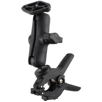 The RAP-B-397-2-238U consists of the RAM Tough-Clamp™ clamping base, 1" ball compatible STANDARD length double socket arm and diamond base adapter. The RAM Tough-Clamp™ includes a 1" ball which can be used to mount a variety of products utilizing RAM's vast selection of mounting solutions. The diamond base adapter contains the industry standard universal AMPS hole pattern, which will connect to a large variety of RAM Mount and third party cradles. The mount is designed with a RAM 1" diameter patented rubber ball and socket system that has adjustment points at both ends of the double socket arm; this allowing for almost infinite adjustment and perfect viewing angles.