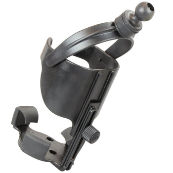 Designed for bigger insulated cups, plastic water bottles or even your reliable steel coffee cup, the Level Cup™ XL keeps your drink upright, regardless of the conditions. This kit includes the RAM® Level Cup™ XL with a 1" B size rubber ball directly attached. The oversized opening cradles the biggest of gulps and the adjustable bottom piece moves up and down to accommodate taller cups. In addition, the rubber feet flex to fit various size cups as well. Drink koozie included.