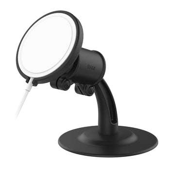 This RAM® 15W MagSafe Adapter is designed specifically to fit the official Apple 15W MagSafe Charger with the added benefit of RAM® Mounts compatibility. This adapter allows a perfect and secure fit for the 15W MagSafe's charging disk and is only compatible for the iPhone 12, iPhone 13 and iPhone 14 series, with or without an official Apple 15W MagSafe case. Included in this kit is the RAM® Lil' Buddy™ mount with RAM® Snap-Link™ connector, perfect for dashboard mounting in your vehicle. Take advantage of your iPhone's magnetic 15W MagSafe charging abilities with this 15W MagSafe mount. This product will not support the 25W MagSafe designed for iPhone 16.
